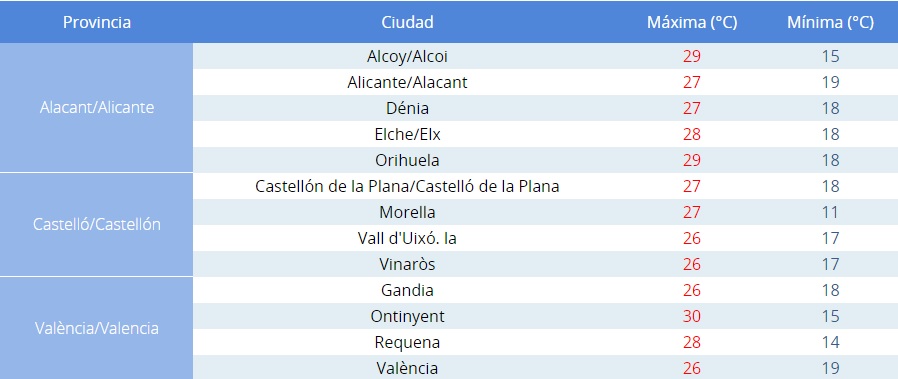 El pont de Sant Joan arriba amb altes temperatures a la Comunitat Valenciana. Si bé el dissabte el cel es presentarà encapotat, el diumenge i dilluns festiu predominaran els cels buidats. El vent serà de component aquest fluix, amb intervals de moderat en el litoral d’Alacant durant tot el cap de setmana.