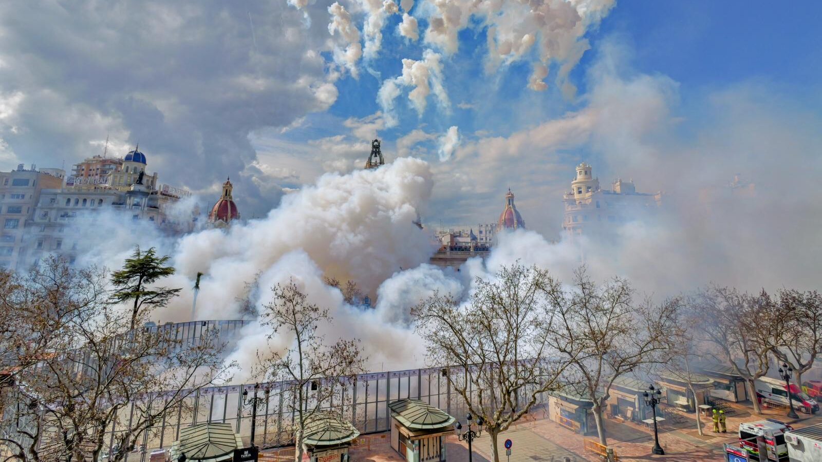 La jornada ha estado marcada también por el alivio meteorológico tras varios días de incertidumbre por las lluvias. El Centro de Coordinación de Emergencias de la Generalitat ha dado por finalizadas las alertas y la Agencia Estatal de Meteorología dibuja ahora una tregua en el tiempo en València, con jornadas más estables y predominio del sol. Este jueves el cielo se ha presentado poco nuboso o despejado, con temperaturas suaves que han oscilado entre los 9 y los 20 grados, lo que ha permitido disfrutar del disparo con normalidad.
