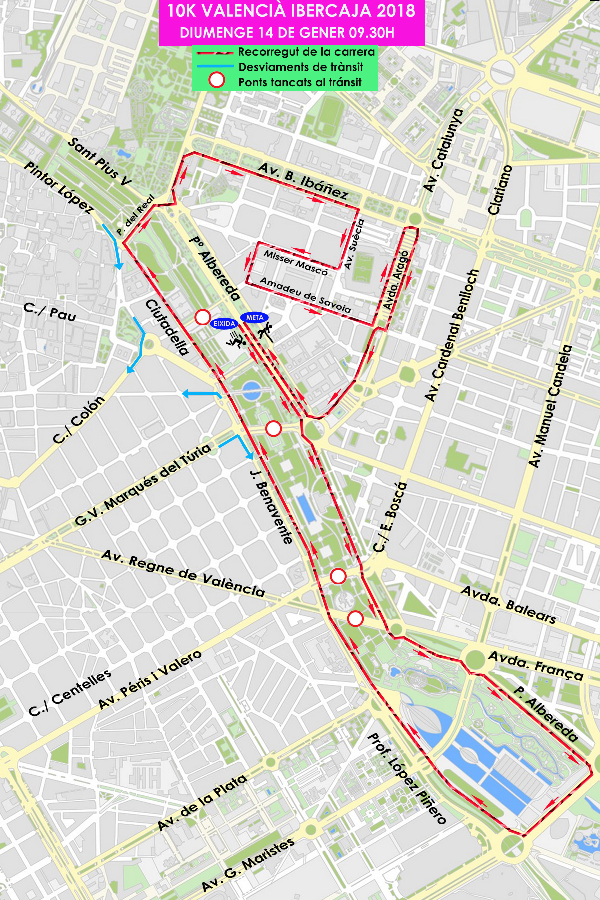 En ese sentido, se prevé que el sábado, entre las 15 y las 16 horas, se corte el tráfico de la Albereda entre el Puente de les Flors y Puente del Real —en ambos sentidos si fuera necesario—, para el montaje de la salida y la meta. El domingo, a partir de las 8.50 horas, se procederá al corte total del tráfico en todos los puntos que dirijan los vehículos hacia el paseo de la Albereda y la plaza de Saragossa.
