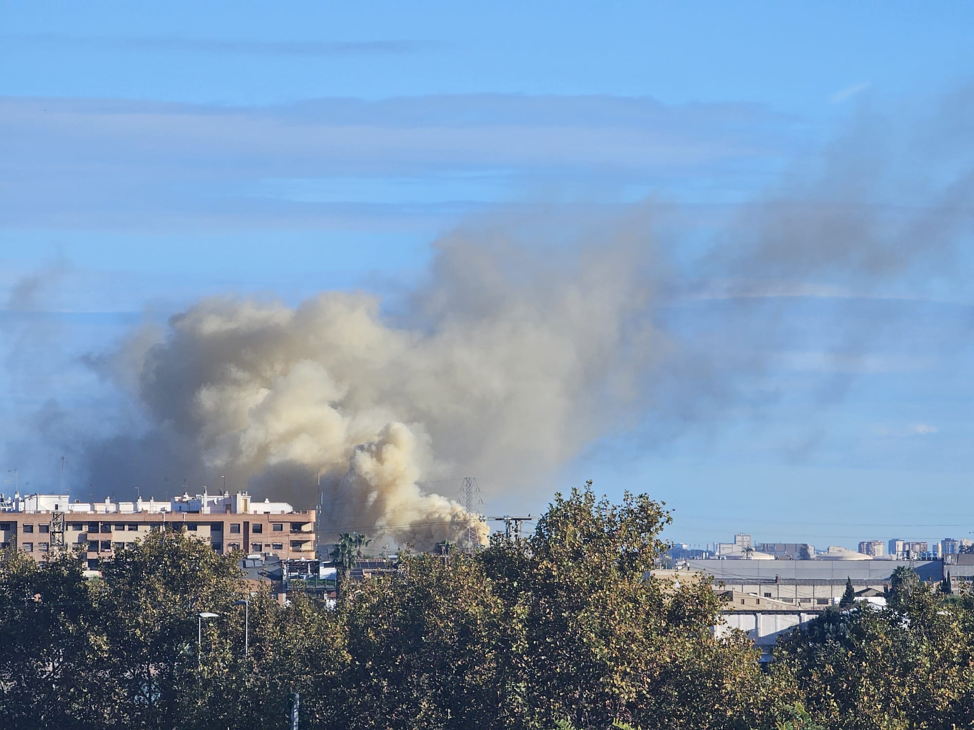 El aviso se ha recibido a las 09:37 horas en la calle Calderers. El fuego se ha extendido rápido por el material inflamable que había dentro de las naves. La nube de humo negro podía verse desde la entrada a Valencia de la avenida de Cataluña y también por la zona de los Naranjos.