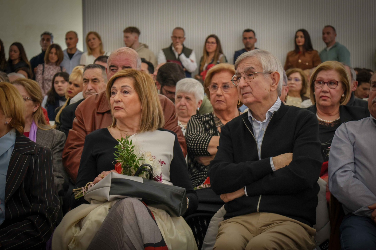 Entre el público se encontraba una mujer torrentina que tiene cien años, madre del marido de uno de los matrimonios homenajeados, cuya presencia fue advertida por su hijo. Y al finalizar la entrega de los reconocimientos, la alcaldesa quiso invitarla a subir al escenario junto a la concejal, para hacerle entrega de un ramo de flores, en un emotivo gesto de cariño y reconocimiento. El auditorio respondió con un cálido aplauso, convirtiendo ese instante en uno de los más conmovedores de la jornada, reflejo del carácter humano y cercano que marcó toda la celebración.