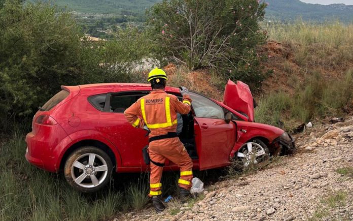 Un vehículo da varias vueltas de campana en Vallada. Los Bomberos del Consorcio Provincial de Valencia han tenido que auxiliar al accidentado. Hasta el lugar se han desplazado dotaciones de Xàtiva y Alzira. A la llegada de los bomberos los ocupantes ya estaban fuera del vehículo y han sido atendidos por los medios sanitarios.