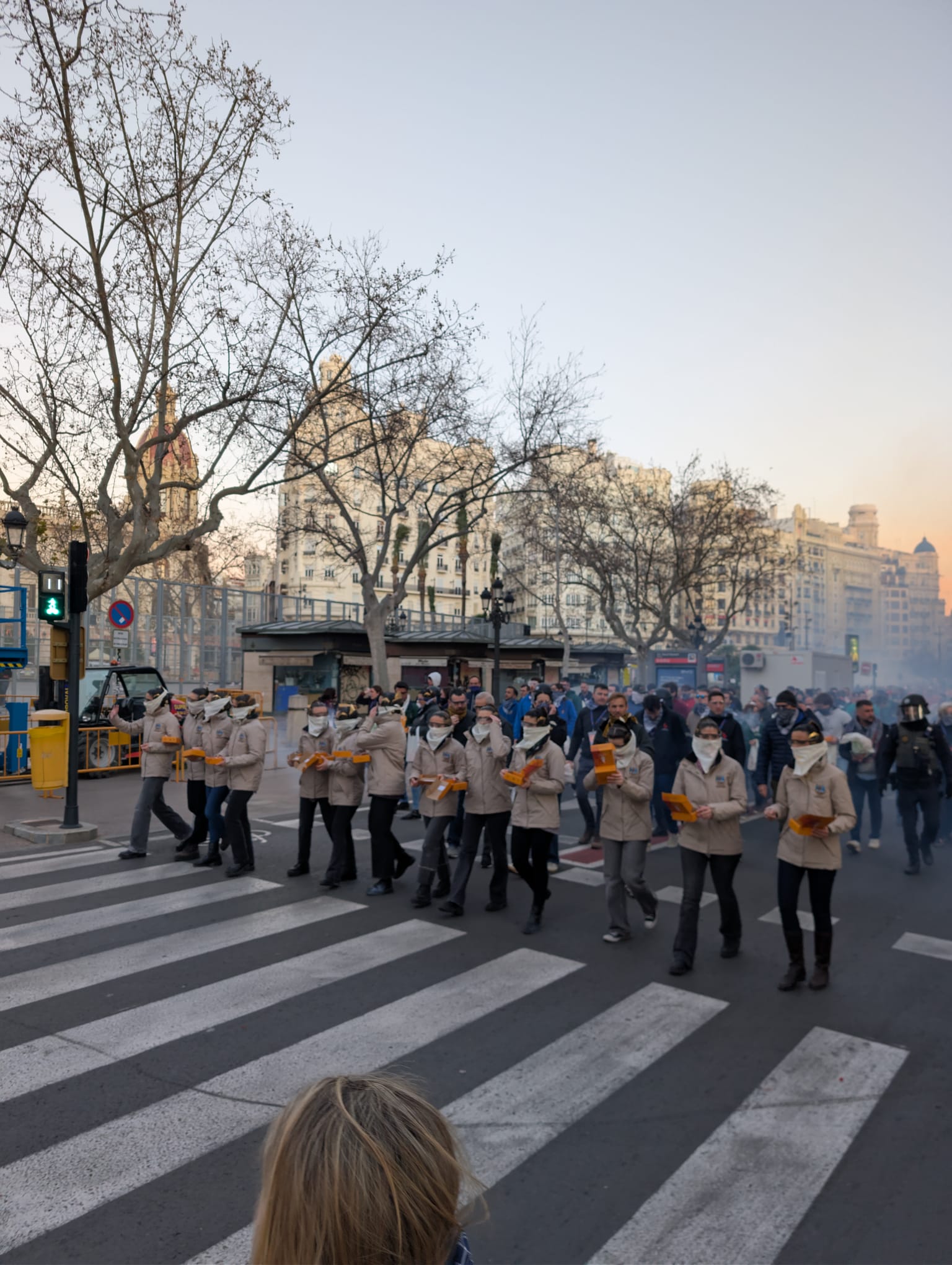 Poco después, a las 07:15 horas, los más pequeños han sido protagonistas de la Macrodespertà Infantil, en la que niños y niñas de entre 8 y 14 años han recorrido el centro de Valencia desde la calle de la Paz hasta la Plaza del Ayuntamiento, pasando por San Vicente, lanzando bombetas y llenando el ambiente de alegría.
