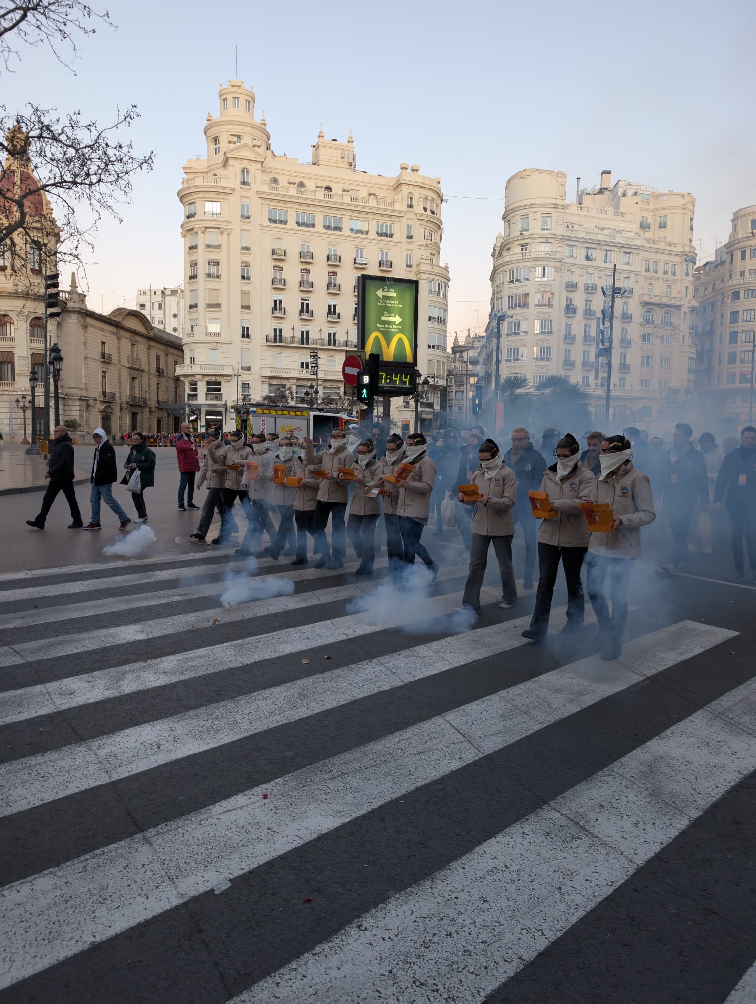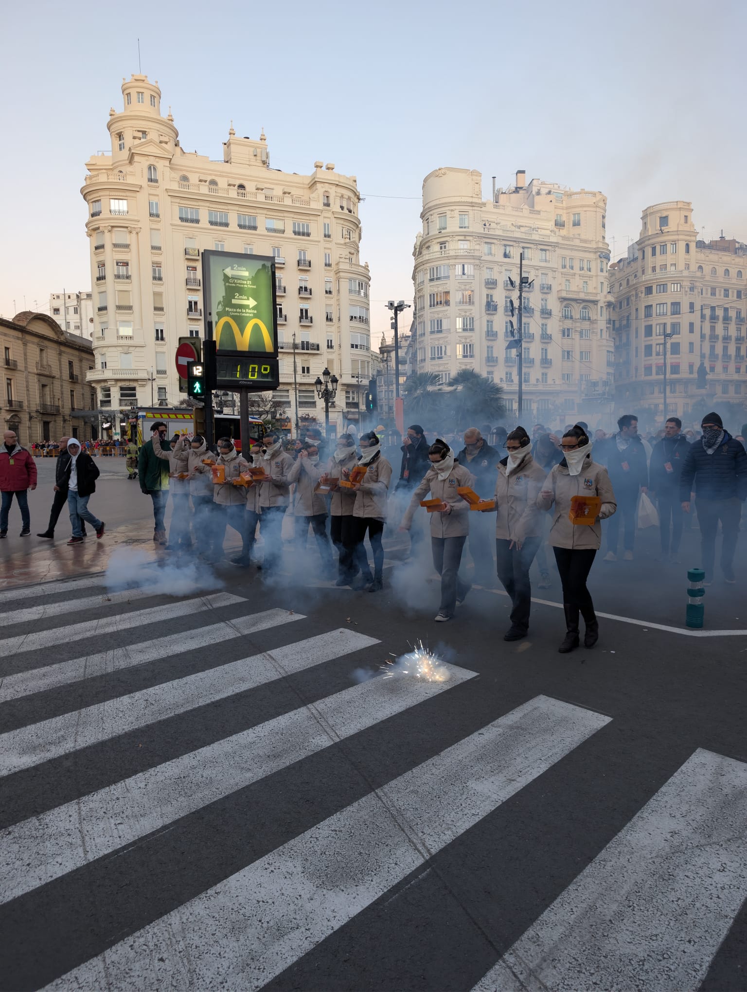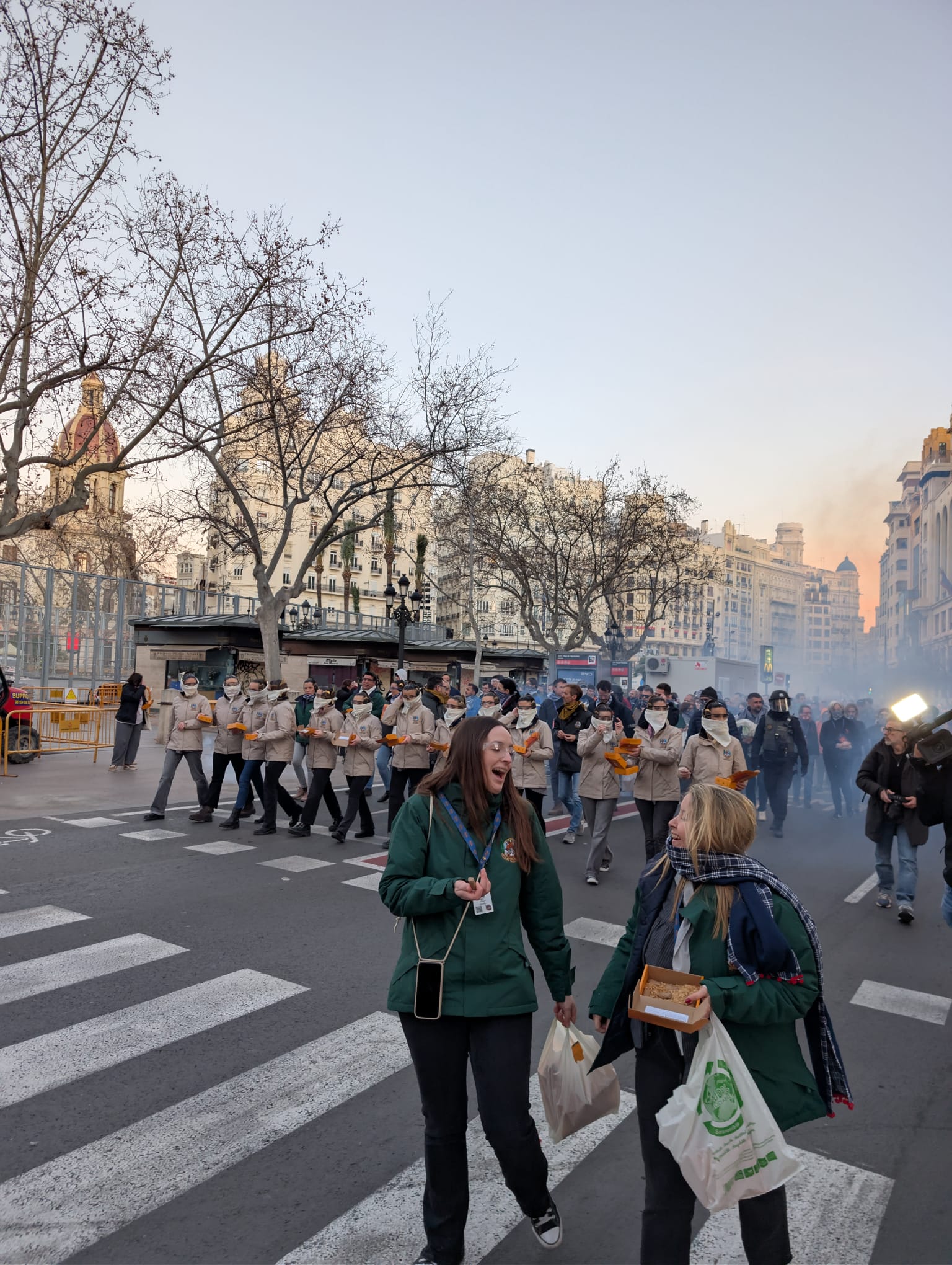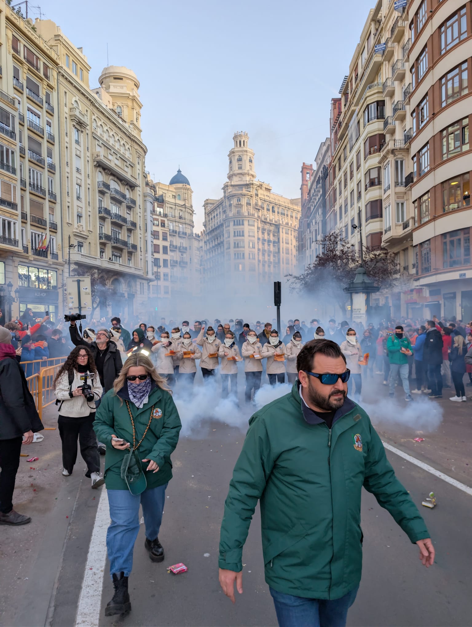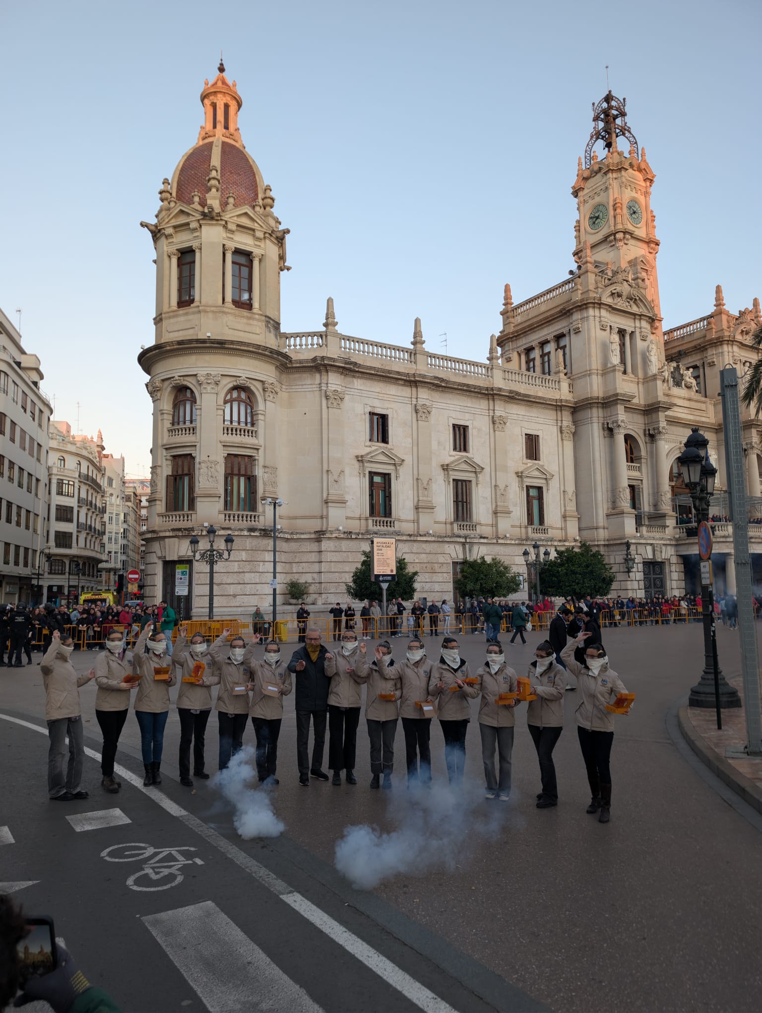 El punto culminante ha llegado a las 08:00 horas en la Plaza del Ayuntamiento, donde Pirotecnia Valenciana ha disparado el espectacular «Estruendo del Amanecer Valenciano», un terremoto pirotécnico que ha puesto el broche de oro al evento. Tras el estruendo, los participantes han disfrutar de un desayuno ofrecido por la organización.