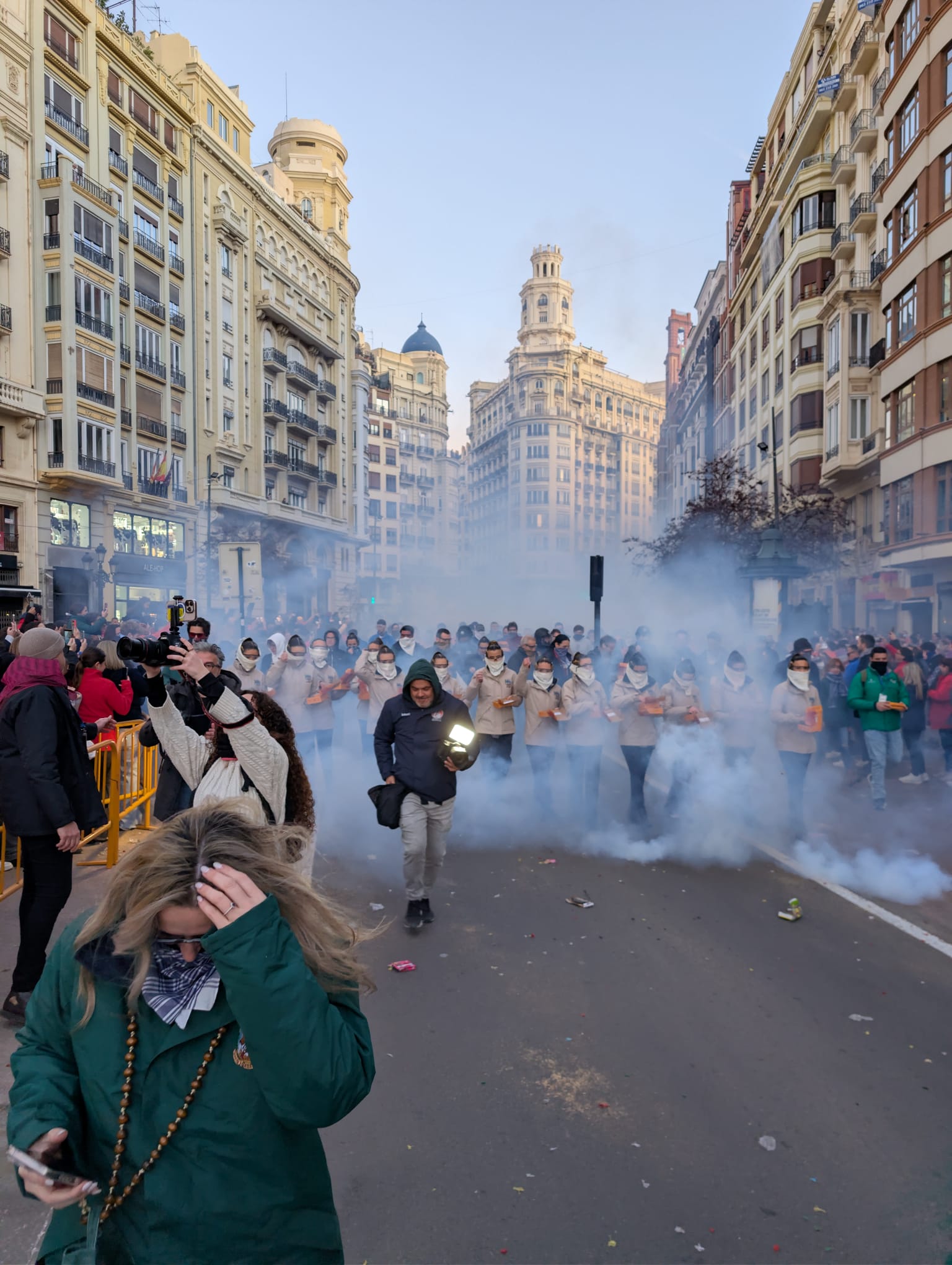A las 07:30 horas ha arrancado el gran evento: la macrodespertà con más de 100 kilos. Miles de falleros han recorrido el mismo trayecto con tro de bac suministrado por Pirotecnia de Alto Palancia. En total, han distribuido 4.500 cajas con 50 petardos cada una, lo que supone un impresionante total de 225.000 explosiones de pólvora.