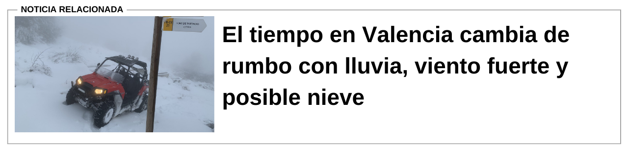 A partir de mañana, miércoles 28 de enero, las precipitaciones avanzarán de oeste a este y podrían afectar a buena parte del territorio valenciano, acompañadas de un descenso térmico más acusado, con bajadas de entre cuatro y seis grados. La cota de nieve se situará entre los 1.200 y 1.600 metros, con posibilidad de nevadas en puntos elevados del interior, especialmente en la comarca de Utiel-Requena y áreas próximas al Sistema Ibérico. El viento volverá a ser muy intenso, con rachas fuertes o muy fuertes en el interior y el prelitoral.