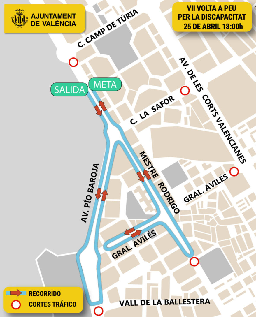 Así pues en este contexto, una semana más, Valencia alberga una seguidilla de competencias que tendrán afectaciones al tráfico en la ciudad. La primera de ellas es La Volta a Peu per la Discapacitat, el sábado 25; y la 15K Valencia Abierta al Mar, que se disputa el domingo 26.