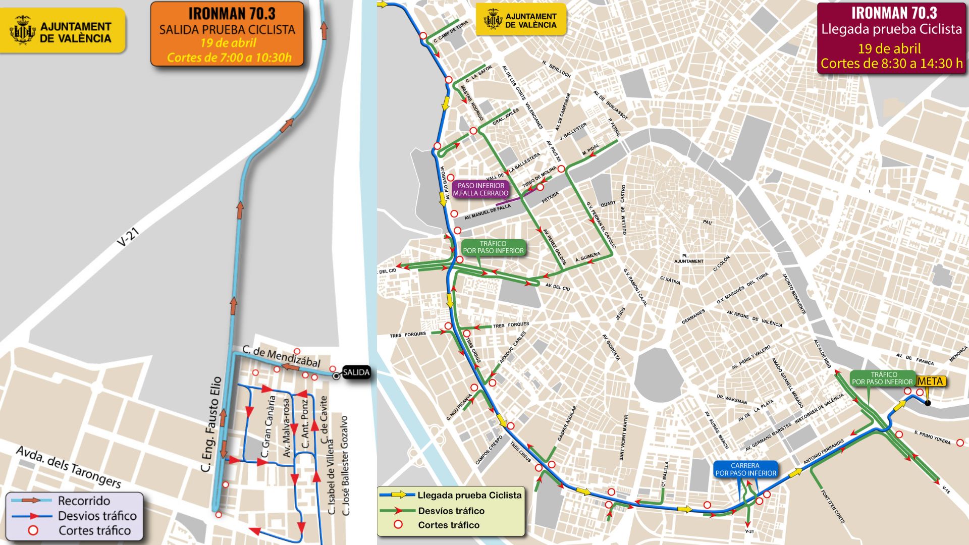 La tercera edición del triatlón de media distancia Ironman 70.3, organizado por Ironman Spain SL con el apoyo del Ayuntamiento de València y la Fundación Deportiva Municipal, se celebrará este fin de semana y constará de tres pruebas. Sin embargo, será la de ciclismo la que provocará más afecciones a la circulación durante la mañana del domingo, especialmente en la zona sur de la ciudad.