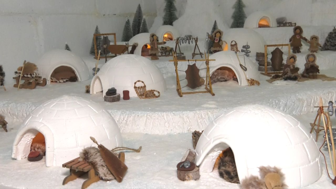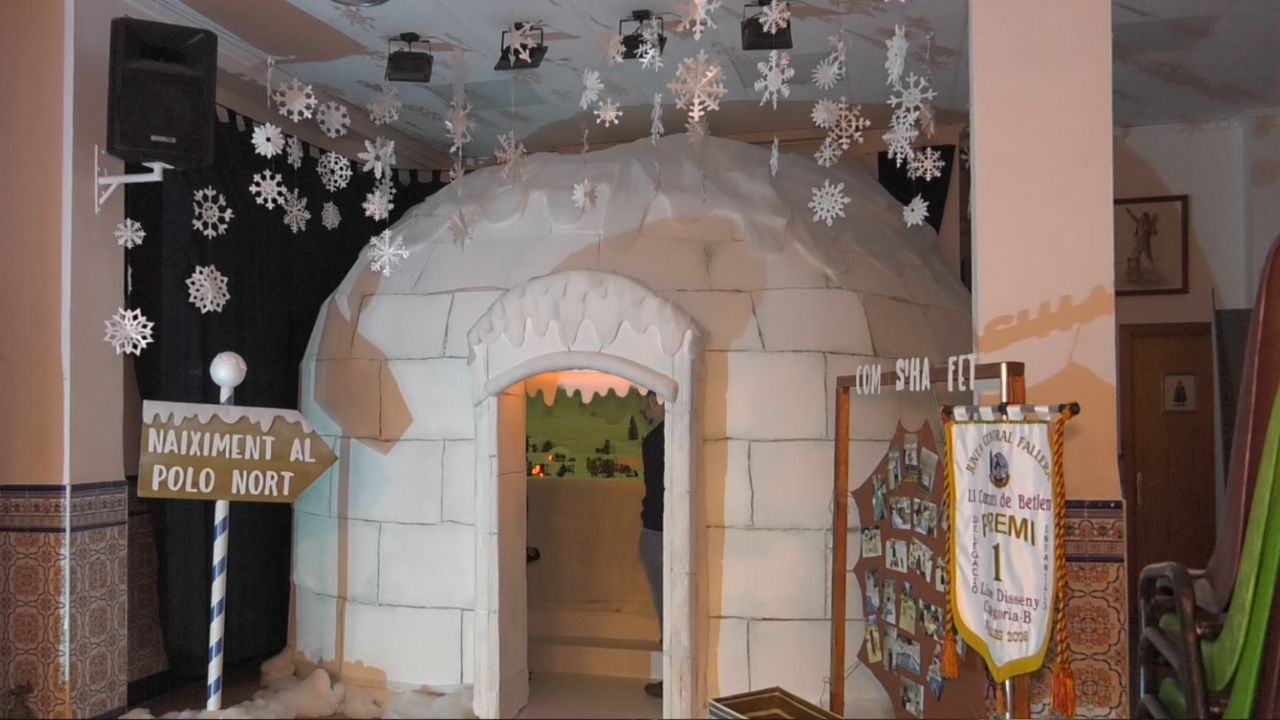 Al acceder impacta encontrarse con un enorme iglú de poliespán que da la bienvenida a los visitantes. El belén está ambientado en el Polo Norte, con luces azules que recrean el hielo y la nieve, música ambiental y un pequeño tren en movimiento.