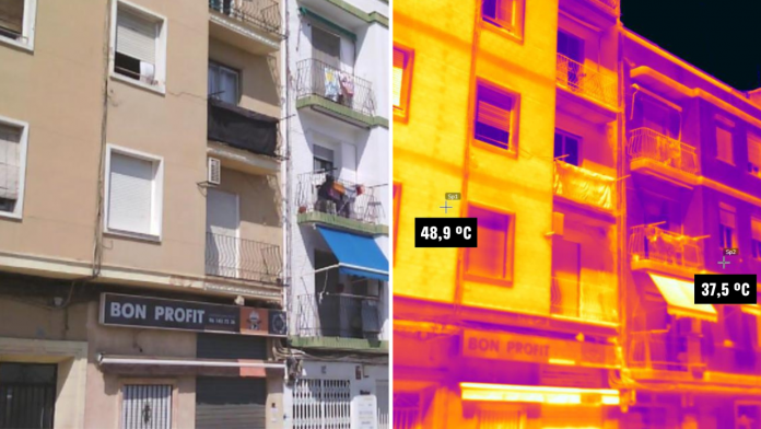 Para evidenciar la magnitud del problema, Greenpeace ha realizado una serie de inspecciones con cámaras termográficas en distintas ciudades españolas, entre ellas Valencia. Las imágenes, tomadas en barrios con alta densidad de población y baja calidad constructiva, muestran cómo el calor se filtra sin resistencia a través de ventanas, cubiertas y paredes, alcanzando hasta 48º en superficies interiores.