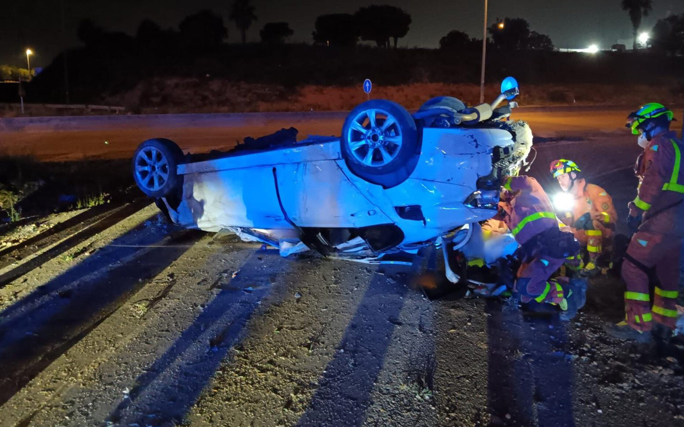 Vuelca un coche en la autovía de Torrent esta madrugada con cuatro jóvenes en su interior. Los ocupantes han tenido que ser excarcelados por los bomberos después de dar varias vueltas de campana. Los hechos han tenido lugar en la CV-33 en la incorporación de Picanya.